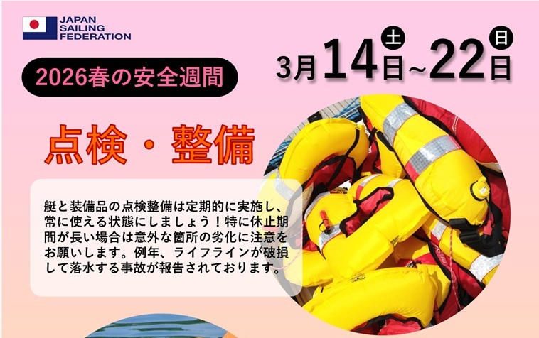JSAF外洋安全委員会では毎年、春と秋の2回「安全週間」を設け落水防止・救助訓練や点検整備の実施を呼びかけています。 2026年春の安全週間 ...