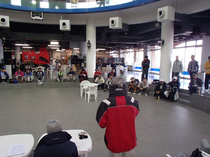 朝7時半、艇長会議では、スタートラインを完全に超すまではスピンホイストは禁止ということとともに、いつものクラス別スタートではなく、一斉スタートということが告げられます。
