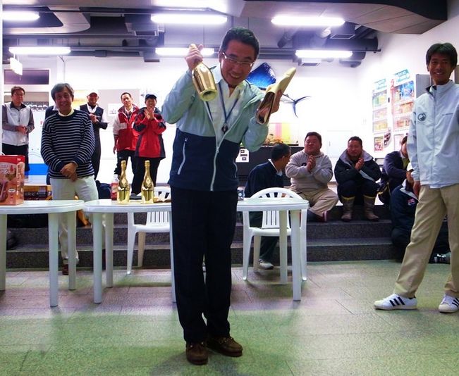 表彰式では優勝賞品のゴールドに輝くスパークリングワインが贈られました。